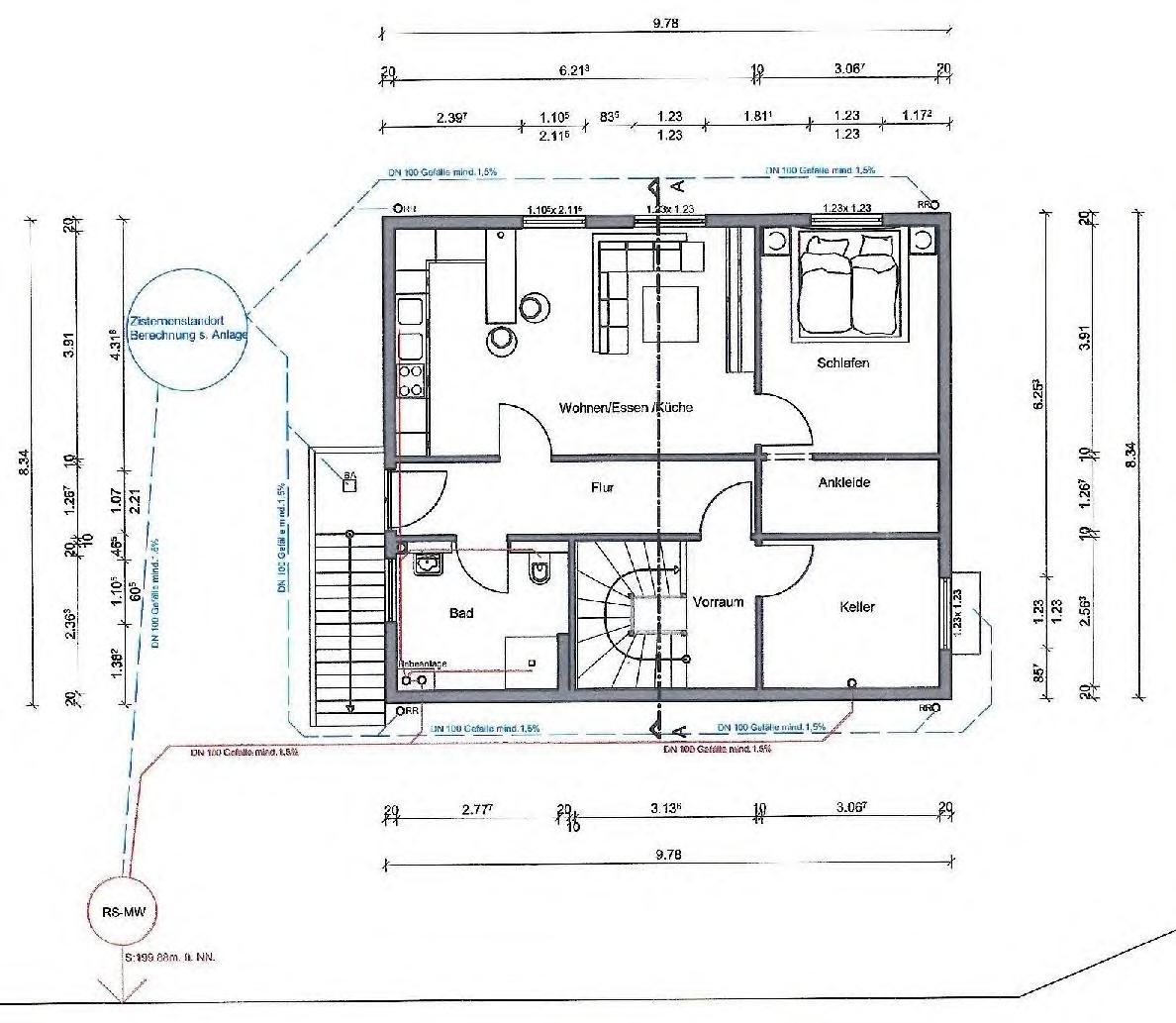 mit Einliegerwohnung. Vermutlich Holzständerbauweise auf Keller aus Betonfertigteilen. Teilausgebautes UG/EG/ausgebautes DG.