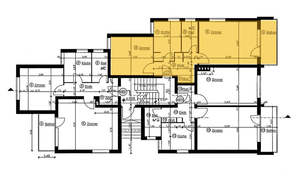 Es handelt sich um einen 90/100- Miteigentumsanteil an dem Grundstück Flurweg 38 A, 38 B verbunden mit dem Sondereigentum an der Wohnung Nr. 9 und einem Sondernutzungsrecht an einem Kfz-Stellplatz. Nach den Feststellungen der Sachverständigen befindet sich die Wohnung in einem Mehrfamilienhaus, Baujahr um 1968. Die Wohnung besteht aus zwei Wohnräumen, Küche, Bad, Diele, AR und Balkon mit einer Wohnfläche von 53,49 qm (laut Teilungserklärung).