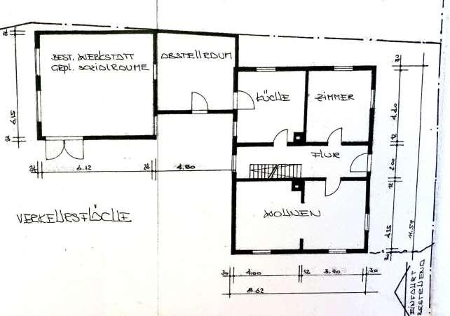 eingeschossiges Wohnhaus mit Anbau und Nebengebäude